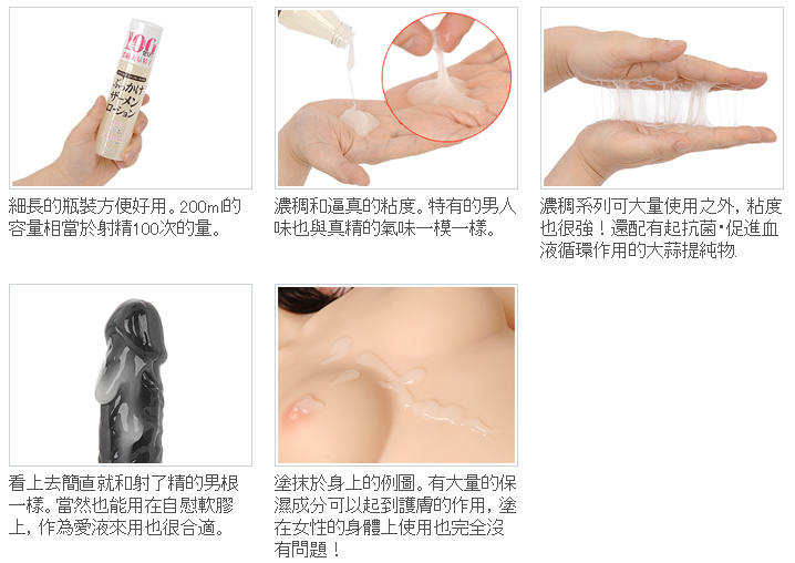 淡黃色的潤滑劑形象的體現了男人的真精。細長的瓶內裝有與精子幾乎沒差別的仿真「精子味潤滑油」,誘惑你浮想聯翩。