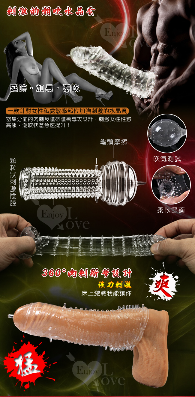 全頭套的設計,套上他不但可增強你老二長度及粗度,還可讓你百戰不洩。