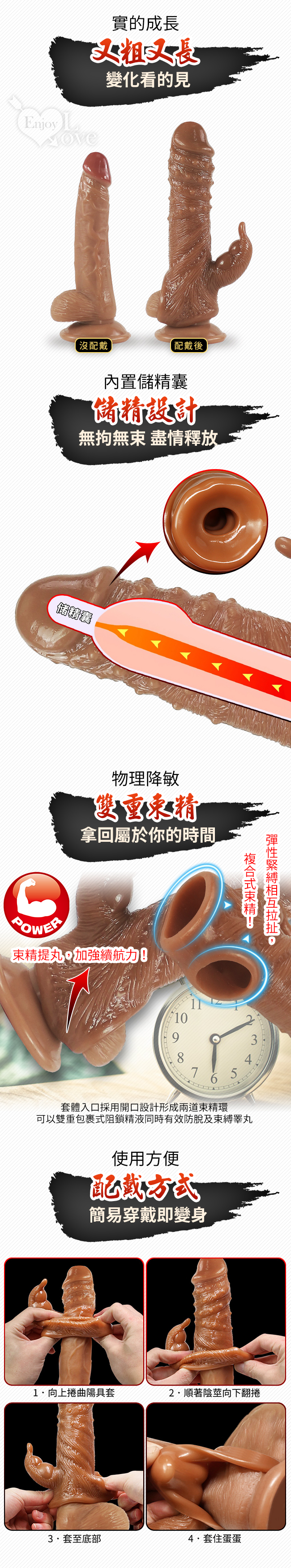 套身上再特別設計另一小頭,專門在進行性愛運動時,負責刺激女性陰蒂部位,更快進入高潮境界。