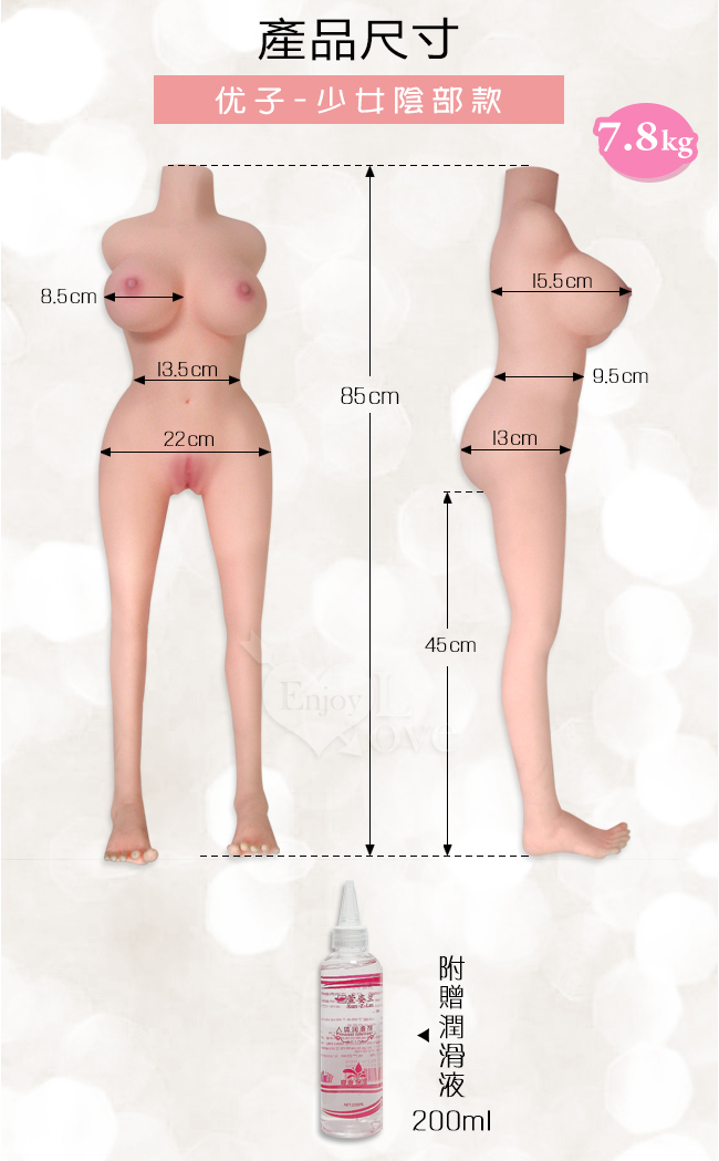 ※ 本品為3種性交功能(陰交,肛交及乳交),肢體內有變形龍骨(鋼條節),所以都可任意轉換的姿勢。