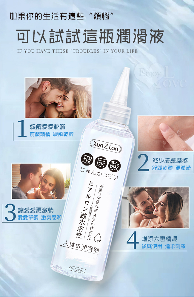 當前位置: 首頁 > 兩性用品 > 性愛潤滑液 > Xun Z Lan ‧ 玻尿酸無色無味水溶性潤滑液 200ml﹝尖嘴設計﹞