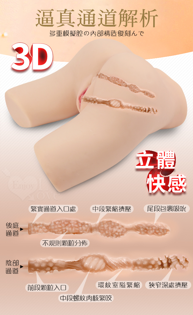 ※ 3D立體仿真人陰道及後庭構造,雙雙都將帶給您最強烈觸覺刺激。