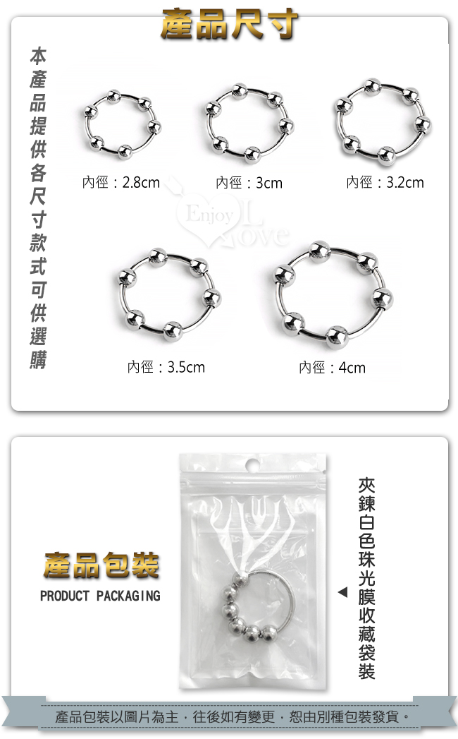當前位置: 首頁 > 男性用品 > 猛男加強裝備 > 不銹鋼金屬老二加強環 - 6入珠 可移滾動﹝內徑2.8cm﹞男鎖精女刺激
