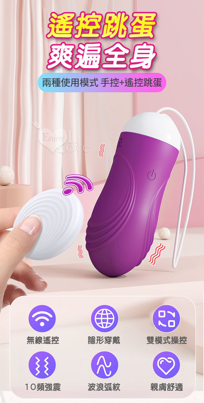 ※ 波浪弧紋外觀加大刺激感,10頻酥麻強震、10米無線遙控,親膚材質貼合女性尺寸,USB直充方便快捷,噪音小,體驗感非常好。